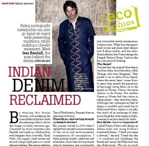 One focus of my work since 2006, has been helping promote more awareness of sustainable business issues amongst elites and middle classes across the global South, particularly in Asia and Latin America. So Im pleased that this month I get to promote sustainable fashion and jewellery in both the spanish Vogue and Marie Claire in India. In one of the articles I discuss the history of denim, and how it can be reclaimed as Indian. The side benefit of this work is that, as just an academic and consultant, I get to chuckle about appearing in top fashion magazines! So, don’t just stand there, let’s get to it (strike a pose, there’s nothing to it…)